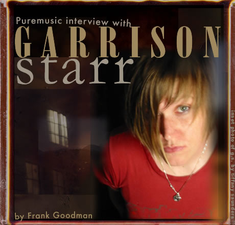 And a lot of people don't really care about greatness or inspiration. I just don't happen to give a damn about any of them. (Like they say in The Godfather, "They're animals, anyway, let them lose their souls.") But seriously, if you're looking for your next great thing and haven't experienced the music of Garrison Starr, her new record The Girl That Killed September is her best yet in a long line of singular recordings. There's a lot of new stuff on this record for diehard fans of G's, too: covers of Neilson Hubbard and Jason Wilkins songs, great vocal percussion forming organic "loops" on which songs get built, less acoustic guitar, so the songs get a more pop feel. It's a brilliant step in the right direction, and a direction co-steered by Sharal Churchill of Media Creature/12x12, an L.A. publishing company turned multi-media label that sounds like the new music business to me. The new CD is only ten bucks, and the mp3's are only 75 cents--you can own the eleven-track downloaded version for $7.50. If that sounds like a sales pitch, it's not. It's about not following the example of the vanishing labels, or even iTunes. The new music business has to be dreamed up and executed by the musicians and their champions, because the suits are going away. Get The Girl That Killed September, it's great. (That's a sales pitch.) continue to interview |